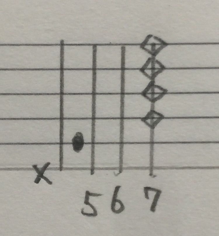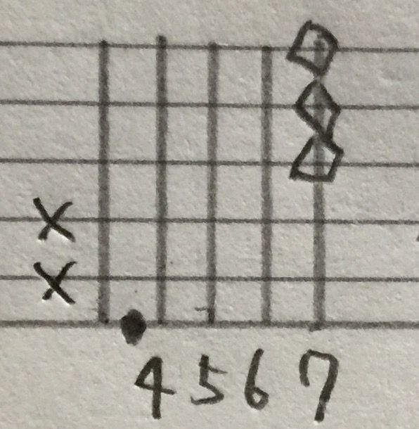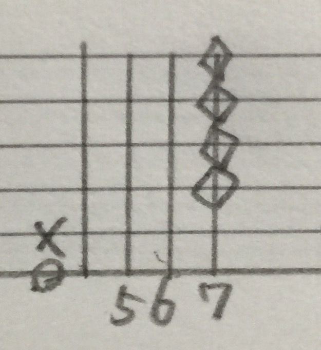 ・G♯m7♭5(G♯ハーフディミニッシュ)※4弦弾かない。