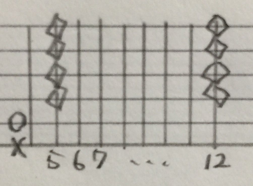 様々なポジションでハーモニクス音は出せますが今回は12,7,5フレット、この3箇所のハーモニクス音のみでコードを作っていきます。(4フレット上のハーモニクス音を使っても色々できますが、音が高すぎる&出しづらいので今回は省きます。)